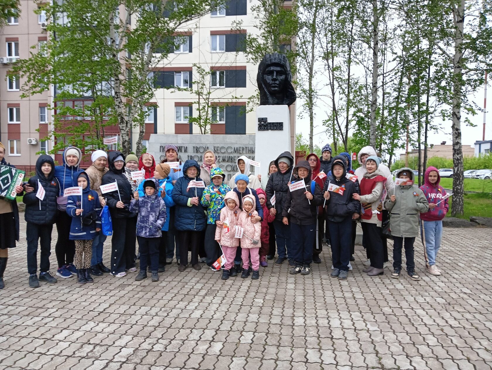 Праздничная акция прошла на приходе храма Покрова Пресвятой Богородицы. Дети, родители и педагоги воскресной школы посетили памятные места города. Возложили цветы у мемориала погибшим воинам, побывали возле памятника дважды Герою Советского Союза Семену Хохрякову.